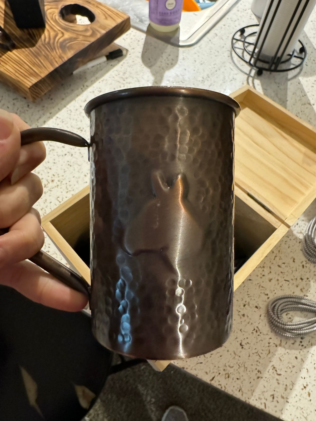 The cup is beautiful well made and unique. It made for a great Christmas gift to a Moscow mule lover.